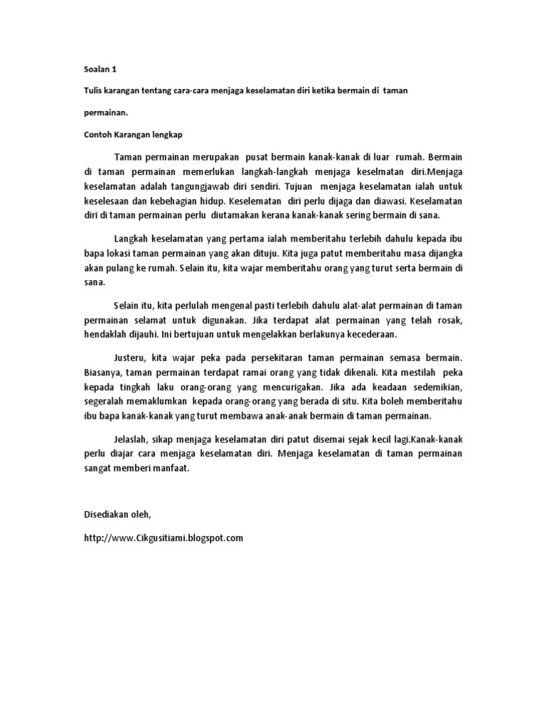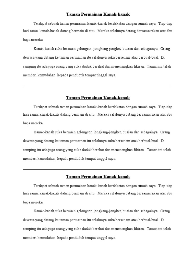 Contoh Karangan Sekolah Rendah Aku Sebuah Taman Permainan